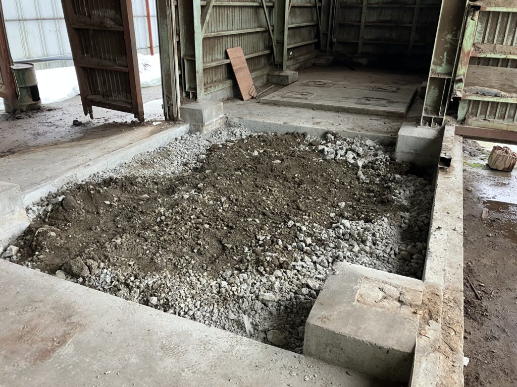 設備設置の為に、コンクリートを重機で必要範囲撤去しました。