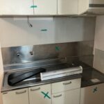 吊り棚、レンジフード、流し台、袖壁の順で上から手際良く解体を行っていきます。解体が終了すると、最後は作業範囲内の清掃です。清掃が終わると施主様と監督に終了確認をしていただき、作業は完了です。職長の明確な作業指示により無駄なくスムーズな作業ができました。