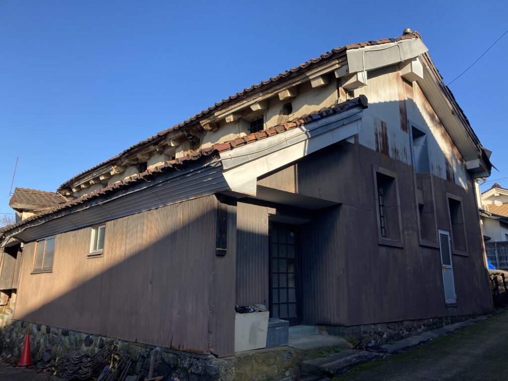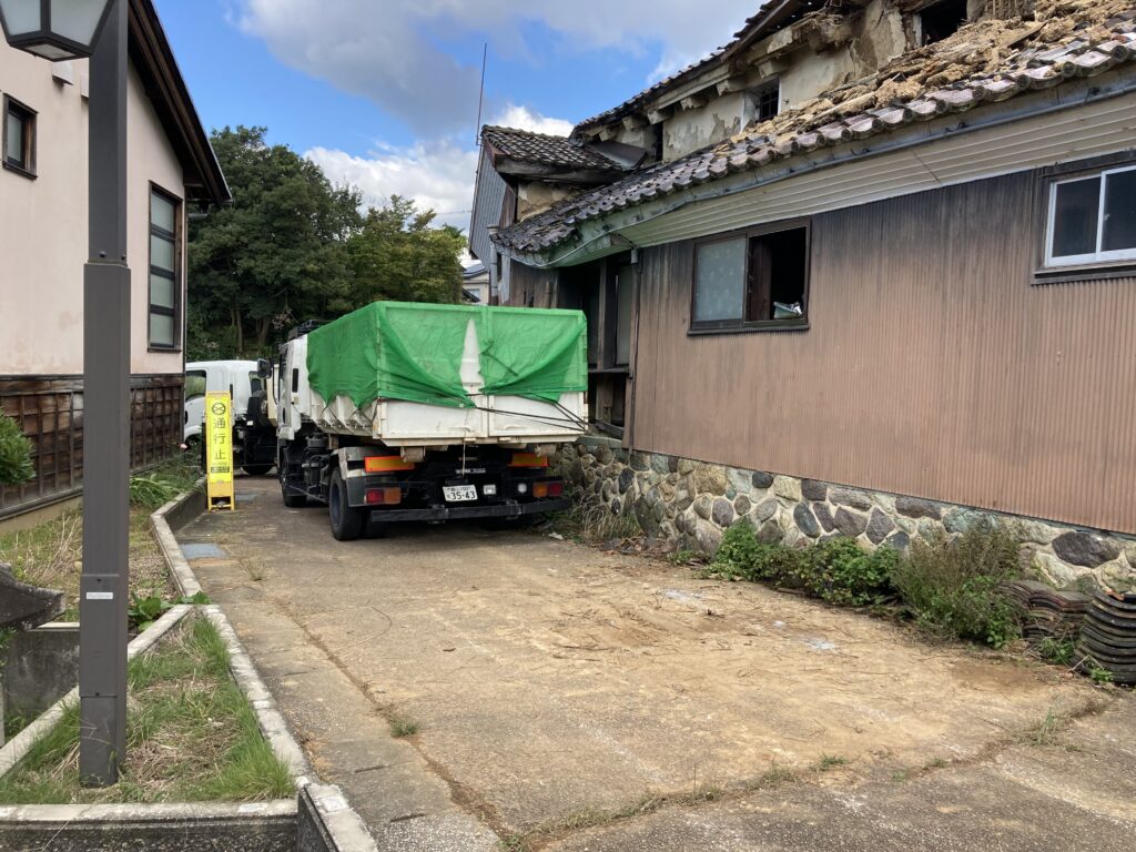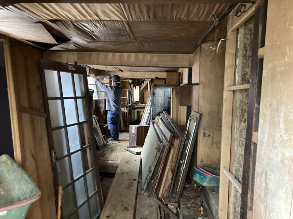 1月の能登地震の影響で崩れかけたところに、雨や雪の影響で中央の屋根が落ちた状態の土蔵を解体しました。
