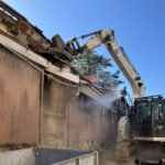 かなり大きい土蔵だったこともあり、重機作業では常に水を散布しながら粉塵防止に務めました。