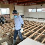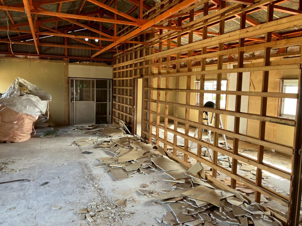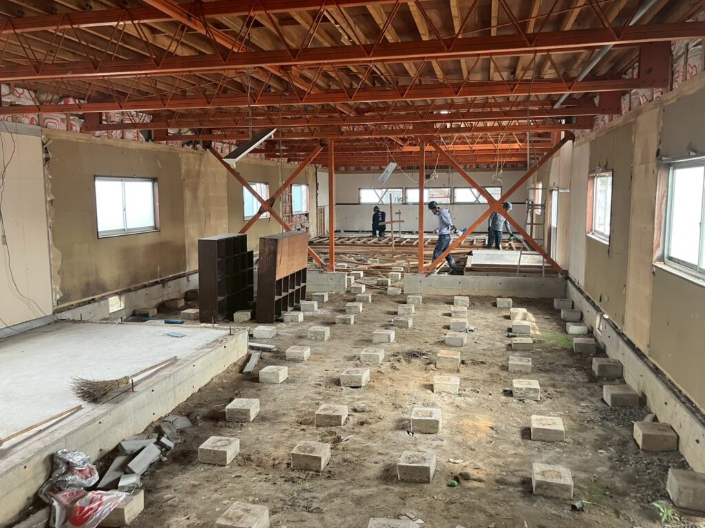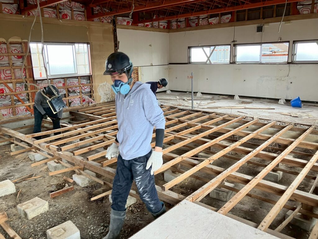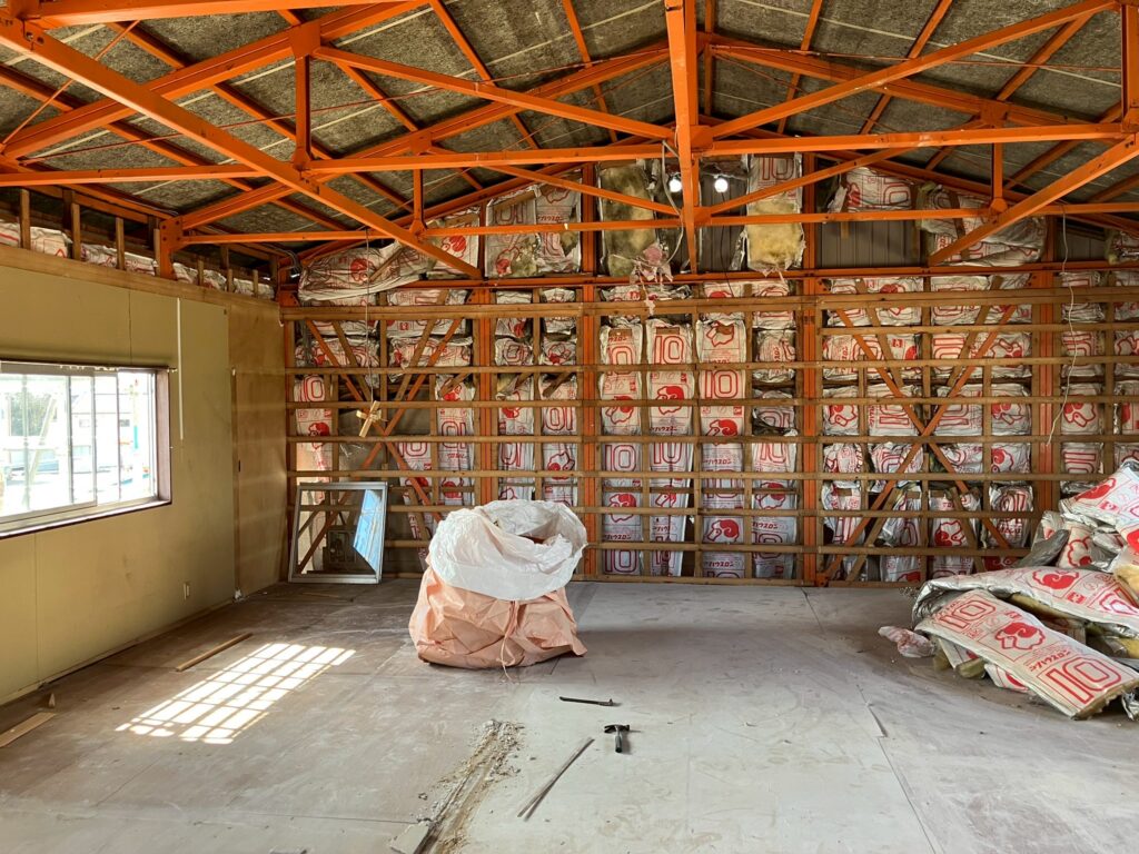 宿舎のスケルトン工事だったのでかなり広く、間仕切りが多かった為、作業員をいつもよりも多く入れて作業をしました。しっかりとした宿舎で、ボードと鉄板が二重構造で組まれていて普段よりも時間が少しかかってしまいましたが、みんなで協力して無事作業を完了する事ができました😃