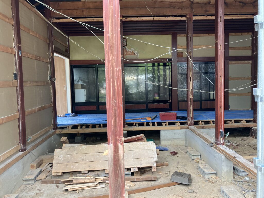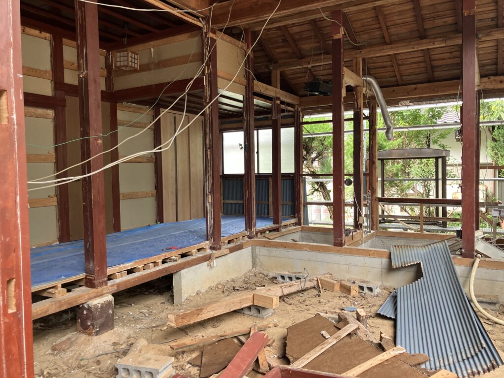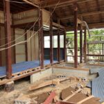 築60年以上経過している建屋で、床などが抜けそうな箇所などがある為、一部をスケルトンにしたいとの事で解体作業をやらせていただきました。