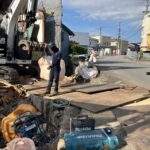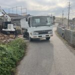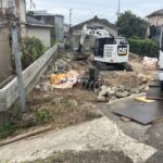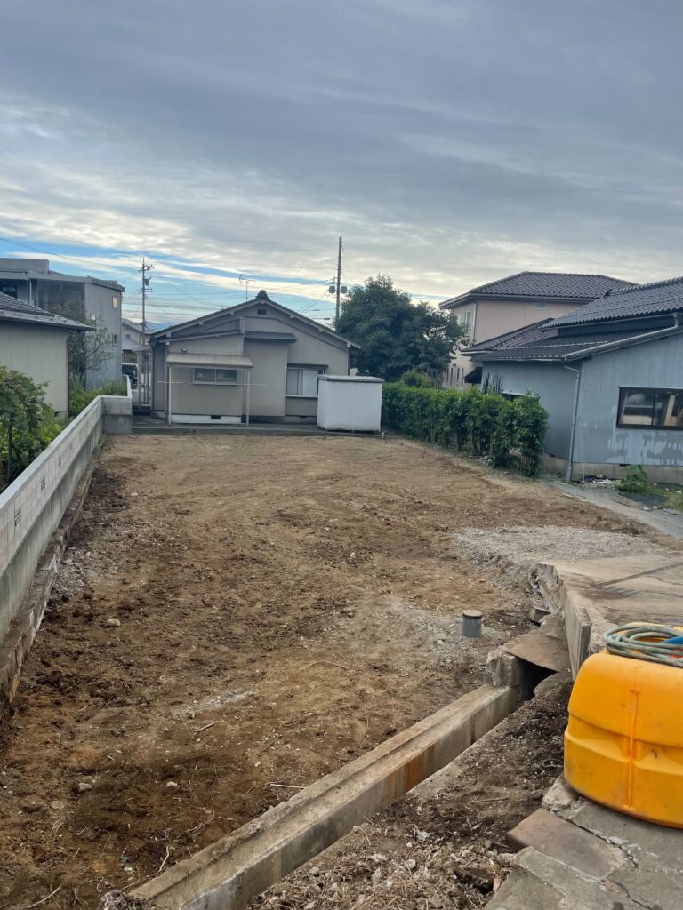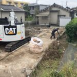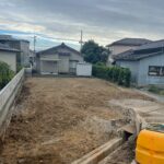建屋の立地場所が、前面道路より1.5m程度下がっていました。重機が入る前の鉄板養生を行いました。